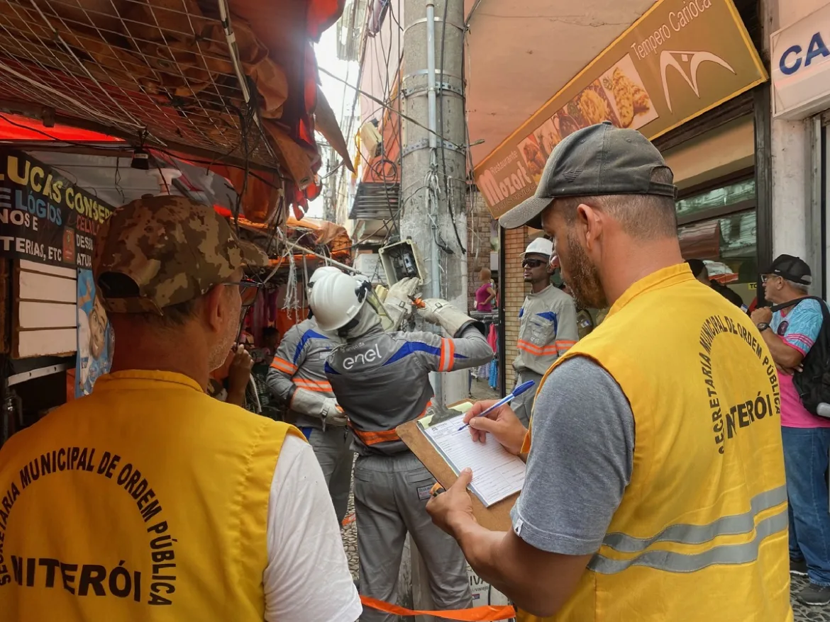 A Prefeitura de Niterói realizou, nesta terça-feira (14), no Centro, uma operação para retirar ligações elétricas irregulares. A ação fez parte do trabalho de ordenamento da cidade com o programa Calçada Livre, liderado pela Secretaria Municipal de Ordem Pública (Seop), e com a operação Caça-Fios, liderada pela Secretaria Municipal de Conservação e Serviços Públicos (Seconser). A operação teve o apoio da concessionária de energia elétrica Enel.