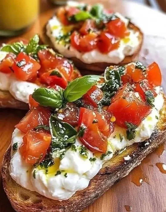 – Sirva imediatamente enquanto o pão ainda está crocante e a burrata é cremosa!