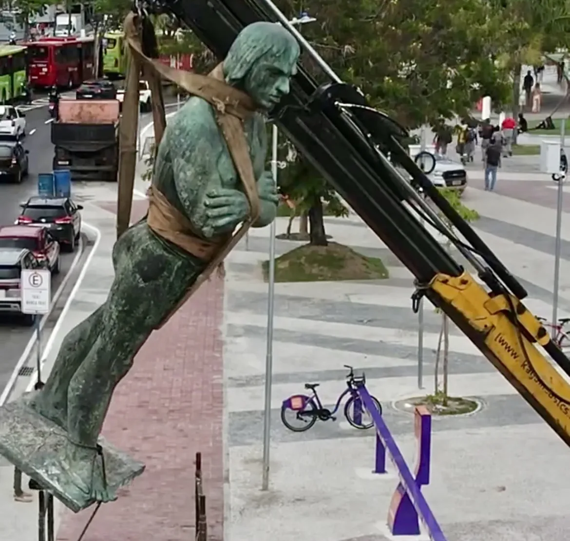 A Prefeitura de Niterói reposiciona a estátua de Arariboia. A ação, realizada nesta quinta-feira (10), faz parte do Projeto Orla Centro e da Avenida Rio Branco, que busca revitalizar e transformar a paisagem da frente marítima da cidade.