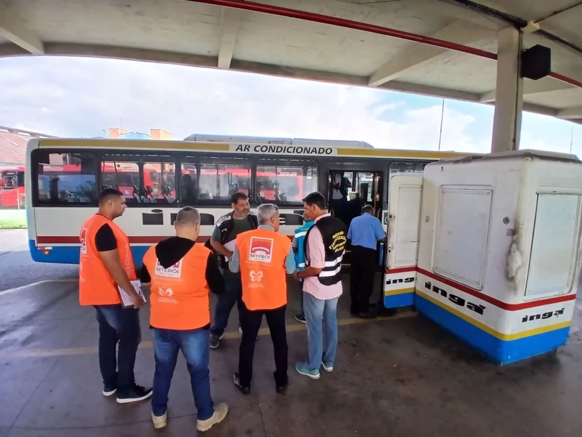 A Prefeitura de Niterói realizou, nesta quarta-feira (30), uma ação de vistoria dos ônibus das linhas 21, 24 e 26 da Auto Lotação Ingá Ltda, no Terminal Rodoviário João Goulart. A operação, fruto de uma parceria entre as secretarias Executiva e de Mobilidade e Infraestrutura, avaliou oito coletivos.