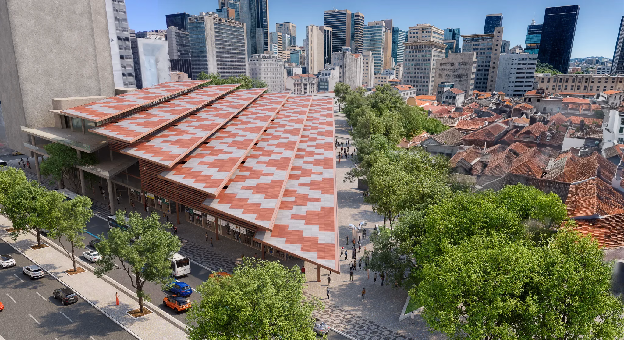 A cobertura do novo mercado será metálica, com estrutura treliçada e telhas trapezoidais de alumínio, em alinhamento com o Plano Agache, respeitando a arquitetura das galerias tradicionais do centro histórico.