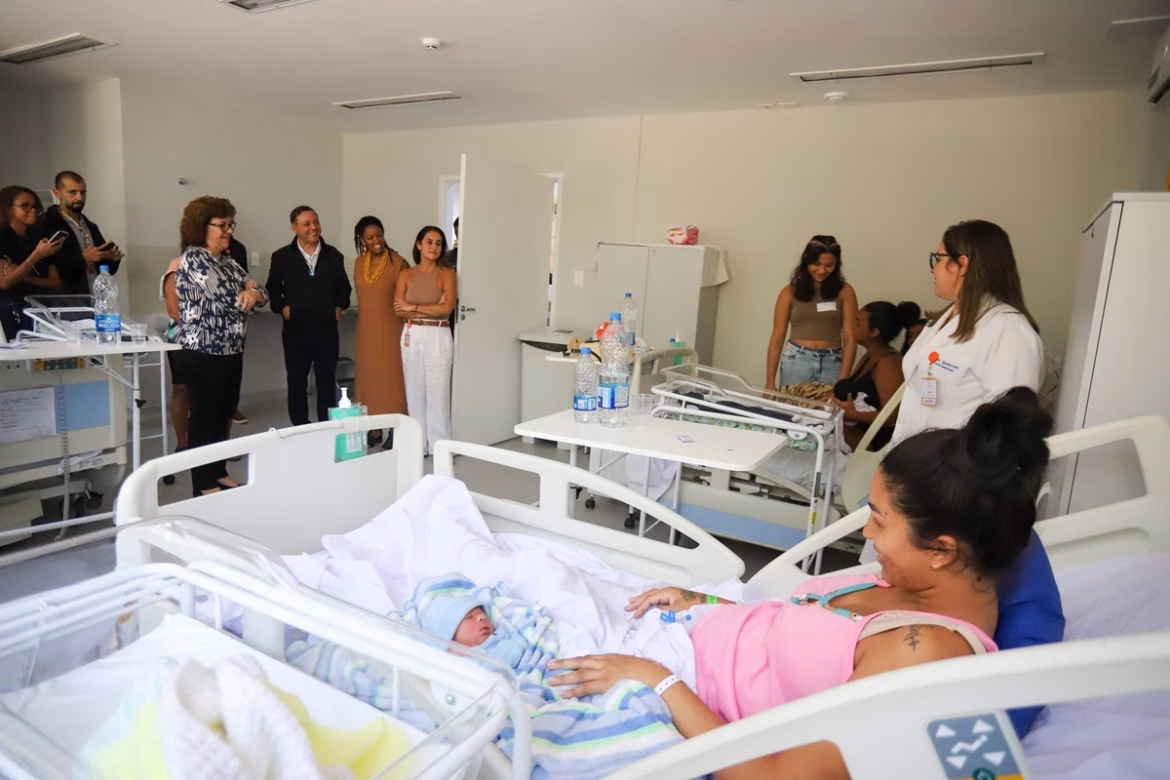 O prefeito de Niterói, Rodrigo Neves, visitou a maternidade acompanhado da primeira-dama Fernanda Sixel Neves; da secretária de Saúde, Ilza Fellows; e da secretária da Mulher, Thaiana Ivia. Ele parabenizou a equipe e reforçou a importância do investimento na saúde para oferecer um atendimento digno, com conforto e qualidade.