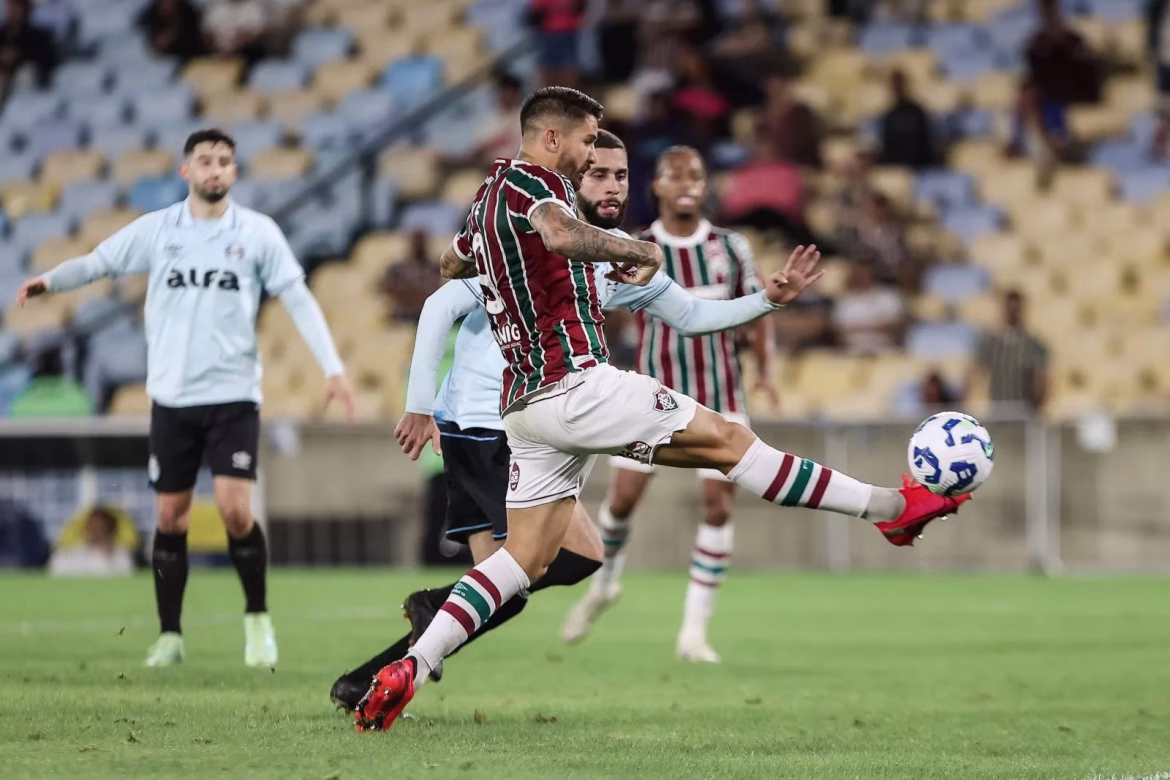 O jogo começou com o Fluminense buscando mais a posse e tentando envolver o Grêmio com trocas de passe desde a defesa. Mesmo com certa dificuldade para criar chances claras, a equipe carioca dominava as ações. A melhor chance surgiu nos acréscimos da primeira etapa, quando Guga desviou de cabeça para o meio da área, e a zaga gremista parou. Everaldo apareceu livre e finalizou com categoria no canto esquerdo de Tiago Volpi, abrindo o placar aos 45 minutos. O Grêmio, por sua vez, pouco produziu ofensivamente e levou perigo apenas em finalizações esporádicas.