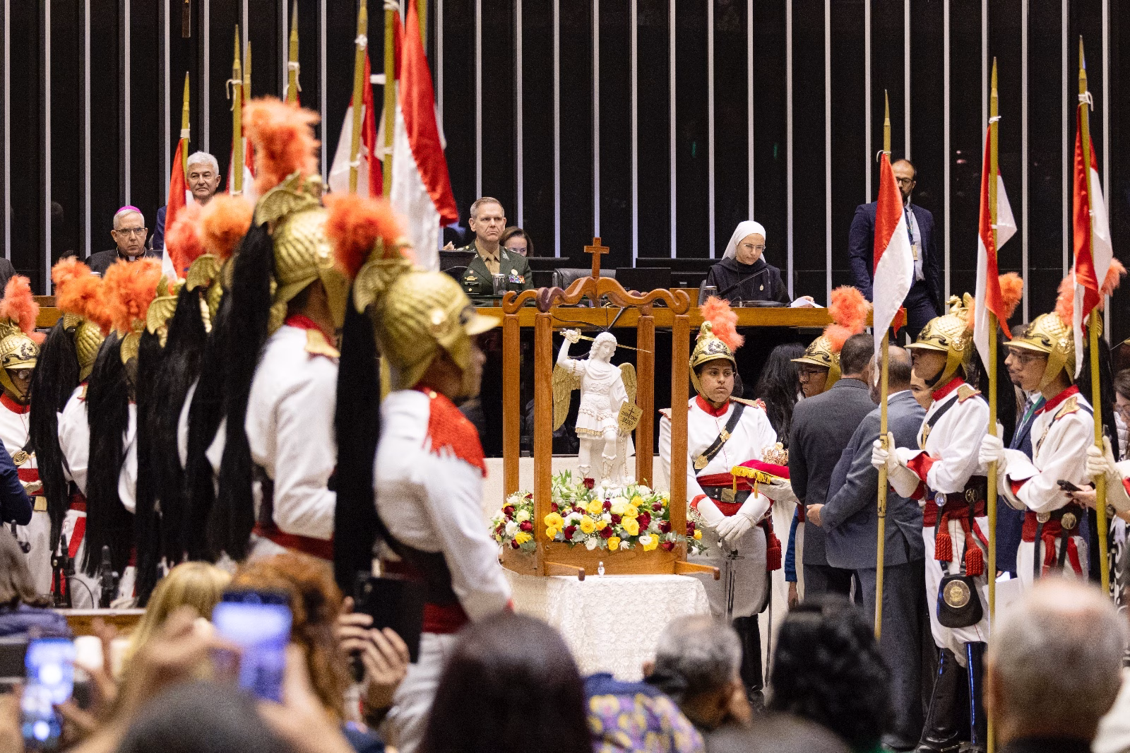 Uma sessão solene homenageou a visita da imagem peregrina de São Miguel Arcanjo à Câmara dos Deputados, em Brasília (DF). O evento foi realizado no Plenário Ulysses Guimarães e teve início às 12h desta terça-feira, 12.