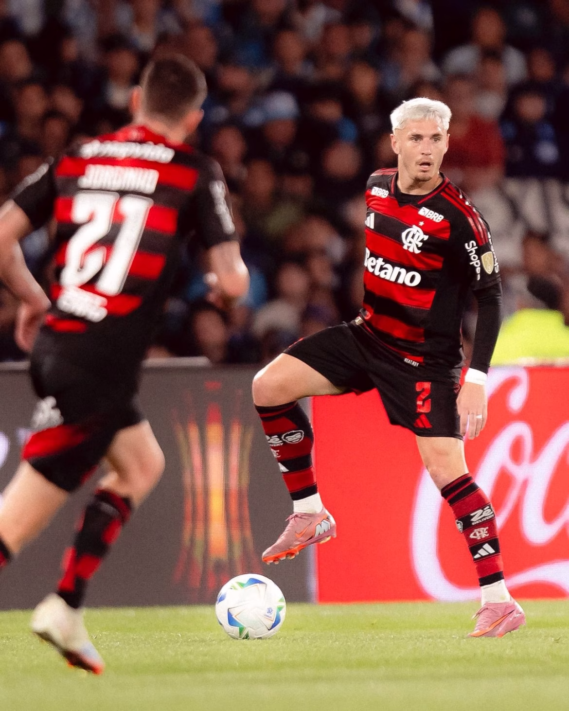 Com isso, Filipe Luís mexeu logo na equipe, colocando Danilo e Bruno Henrique nos lugares de Carrascal e Arrascaeta, respectivamente. Com vantagem numérica, o Racing se mandou todo para o ataque.