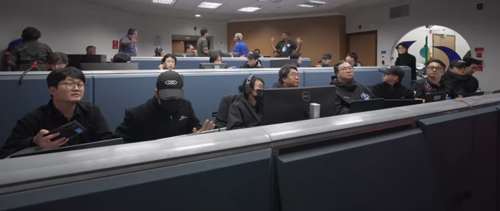 Mediano de controle no momento da anomalia ocorrida no foguete, na noite desta segunda-feira (22) • Reprodução/Innospace