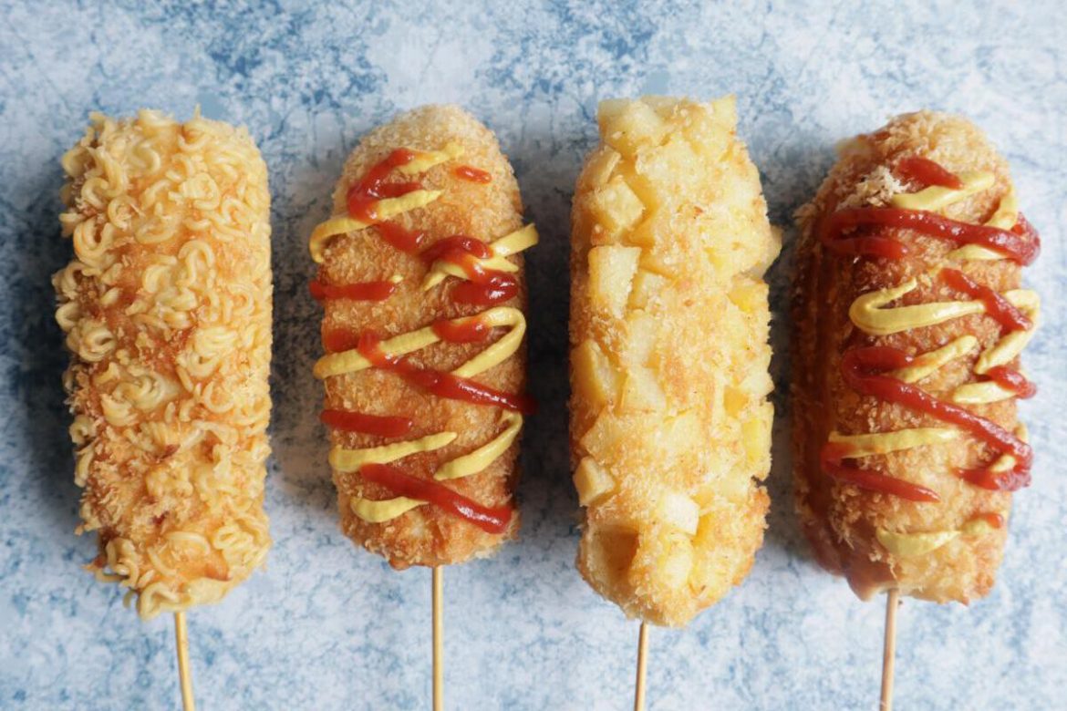 Os corndogs coreanos são uma versão asiática do clássico corndog americano , mas com detalhes que os tornam únicos. Embora ambos compartilhem a teoria de uma salsicha empanada e frita, os coreanos dão seu toque privativo: a volume é mais macia e a cobertura pode ser feita com panko , macarrão momentâneo ou até mesmo batatas em cubos.