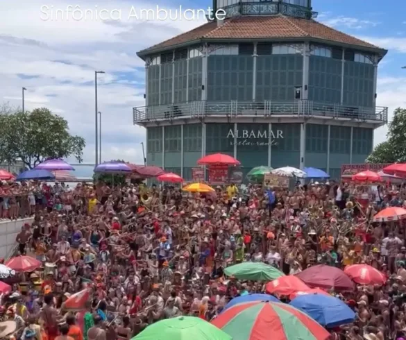 Imagens que circularam nas redes sociais mostraram que a sarau começou ainda antes da chegada. Fantasiados, músicos e integrantes do público cantaram e dançaram durante a travessia, convertendo o trajeto em segmento do espetáculo. No desembarque, o som dos sopros e da percussão conduziu a povaréu até a terreiro, tomada por foliões em clima de celebração.